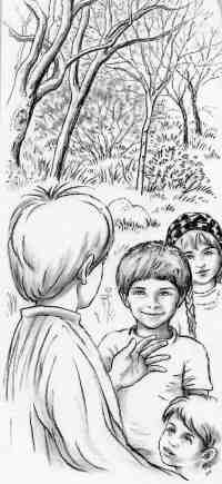 | - Mes vacances touchent à leur fin! dit Varfalomeï aux enfant réunis dans la clairière. Demain, je repars à Saint-Pétersbourg. Nous ne nous verrons plus. Mais je penserai souvent à vous. Surtout n'oubliez jamais ce que vous avez appris ici. Dieu prendra soin de vous. Il vous conduira dans la vie, si vous le lui demandez... Les enfants sont tristes de voir leur ami les quitter. Mais il le faut bien... Adja et Micka se promettent de garder dans leur cœur tout ce qu'ils ont appris. Les deux frères mettent vite encore quelques fraises des bois dans leur petit panier. Pendant ce temps, chez eux, les parents font des projets:
