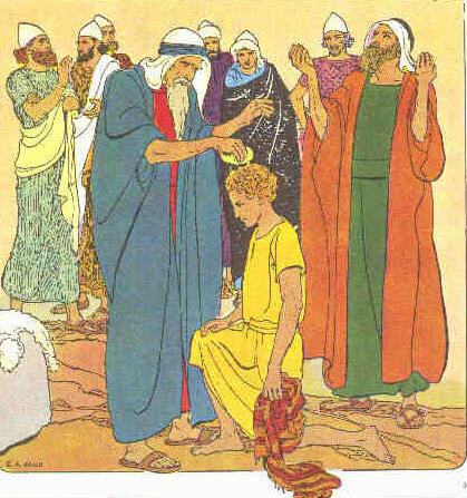 L'aîné s'avança le premier. C'était un homme grand et fort. Samuel pensa:"Ce sera sûrement lui. Quel roi magnifique il fera!" Mais le Seigneur lui dit:"Non, Samuel, ce ne sera pas lui. Je ne regarde pas si mon roi est grand et fort. Je regarde son cœur."