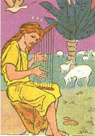 David était un bon roi. Il était un homme selon le coeur de Dieu. Le Seigneur l'aimait beaucoup. Et David n'oubliait pas le Seigneur. Il n'oubliait jamais non plus qu'il avait été autrefois un pauvre petit berger. Alors il prenait sa harpe et il se mettait à chanter, comme autrefois, dans les champs: