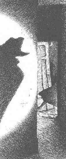 Enfin la lumière s'éloigne en même temps que les pas... Alors, tout doucement, une planche de l'estrade se soulève. Une autre aussi... Elles laissent passer une tête, deux épaules, puis un corps tout entier.