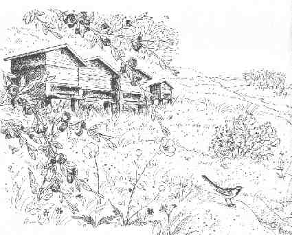 Quand le soleil paraît, les abeilles se remettent à bourdonner partout. Qui donc oserait venir contrôler le contenu de ces ruches? Pas de danger de ce côté-là!