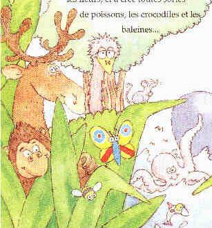 ![]() | "Je me demande comment le monde a commencé…" dit Matieu. D'abord, il a créé la lumière, le soleil et les étoiles. Puis, les continents et les mers. Il a fait pousser les arbres, les plantes et les fleurs, et a créé toutes sortes de poissons, les crocodiles et les baleines… |