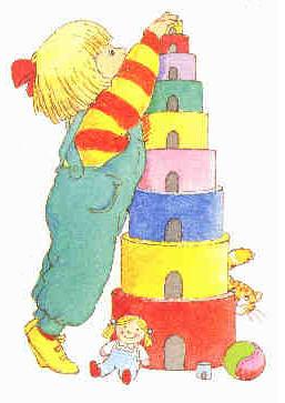 Mais la terre se remplit encore de gens méchants qui se croyaient importants. "Bâtissons une tour qui atteindra le ciel!" dirent-ils; "ainsi, tout le monde verra qui nous sommes!" Vraiment, ils étaient trop orgueilleux! Dieu leur fit parler des centaines de langues pour qu'ils ne se comprennent plus. Puis, il les dispersa sur la terre. On appela cette tour la tour de Babel. | ![]() |