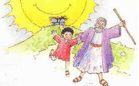 Parmi tous les gens du monde, Dieu choisit un homme. "Abraham!" lui dit-il. "Quitte ta maison et ton pays et va au pays de Canaan." Abraham obéit et partit. Il prit avec lui sa femme Sara, ses troupeaux de brebis, de vaches et de chameaux et se mit en route. Dans ce nouveau pays, Dieu prit soin d'Abraham et le rendit très riche. Abraham et Sara étaient âgés quand ils eurent enfin un fils qu'ils appelèrent Isaac.
