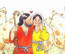 ![]() | "Laban, je travaillerai sept ans pour toi si tu me donnes ta fille en mariage", dit Jacob. Jacob prit aussi pour épouse Léa, la sœur de Rachel. Un jour, il quitta le pays de son oncle avec sa famille, retourna au pays de Canaan et fit la paix avec son frère. |