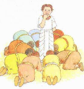 ![]() | Le fils préféré de Jacob s'appelait Joseph et portait une très jolie tunique. Ses onze frères étaient jaloux de lui, et se disaient entre eux: "Ce n'est pas juste!" Un jour, Joseph fit un rêve étrange et il en parla à ses frères: "Voilà, nous étions dans un champ en train de lier des gerbes ensemble. Ma gerbe se tenait toute droite, mais vos gerbes firent un cercle autour de la mienne et s'inclinèrent." "Ca alors! s'exclamèrent-ils, tu crois peut-être que tu vas devenir notre roi?" Tandis qu'ils étaient loin de la maison, ils se saisirent de lui et le jetèrent dans un puits. "Ha! Ha! s'écrièrent-ils. Maintenant on va bien voir ce que vont devenir tes rêves!" |