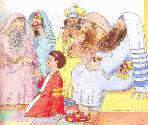 Jésus était assis parmi les sages et les savants dans la cour du Temple. Il les écoutait et leur posait des questions. Et tous étaient émerveillés par son intelligence et ses réponses.