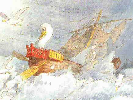 La tempête dura plusieurs jours. Enfin, les matelots s'écrièrent "Terre! Terre!". Mais le bateau se brisa sur un banc de sable.