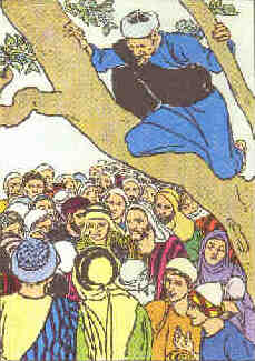 Zachée se hâte. Bientôt, lui aussi pourra dire: Je l'ai vu! Allons, allons, Zachée! Tu es plein d'illusions. Tu oublies donc ta taille? Tu es bien trop petit pour voir une personne au milieu de la foule!