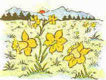 C'est le temps des jonquilles. Depuis longtemps, les boutons attendaient patiemment sur leur tige. Rien ne semblait bouger. Pourtant on pourrait croire que toutes les jonquilles s'étaient donné le mot. Il n'y a pas eu de bruit, mais soudain, tout a éclaté, transformant en jardin doré le vaste champ qui s'étale au pied de la forêt. Le vent se lève-t-il? Alors toutes ces fleurs jaunes frissonnent et, d'un commun accord, s'inclinent à son passage.