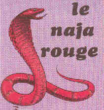 C'est celle d'un naja rouge, l'un des plus dangereux serpents! Au passage de la bécane, et sous l'effet de la vitesse, son corps a suivi la roue, glissé sous la fourche pour s'enrouler autour de l'axe, entre les rayons! Mais la tête, revenant en arrière avec un sifflement agressif, essaie encore d'atteindre le genou de Namtandi. Heureusement que le reste du corps est retenu par la roue! Prudemment notre ami descend de vélo. Vite une baguette... et quelques bons coups!