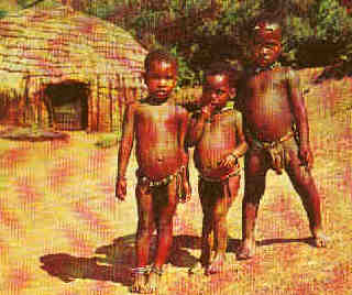 Ils avancent, coupe-coupe en main, en direction du village qui se trouve derrière la "montagne noire". Les herbes sont très hautes, plus de trois mètres; elles cachent même le soleil. De temps en temps, un léger frôlement attire leur attention: des biches qui détalent, ou quelques singes qui, par bonds, escaladent arbre et rochers. Un peu plus loin, un phacochère déguerpit, gros cochon gris au museau renfrogné, avec de longues incisives blanches qui lui sortent de la bouche. Qu'il est drôle quand il court: il garde sa queue relevée comme un paratonnerre!
