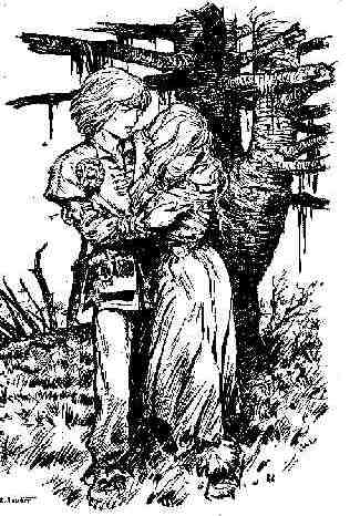 Une soif ardente lui brûlait la gorge et la poitrine. Le garçon alla puiser de l'eau à la source près de laquelle il avait transporté Helga et fit boire la fillette dans ses mains réunies.