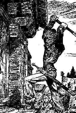 – Arrête, Eric, arrête! criait Thierry désespérément, en courant derrière son ami. Ne le tue pas! Mais Eric, transporté par la fureur, n'écoutait rien. Le prêtre, hors d'haleine, se réfugia dans le temple de Wotan dont il ferma et barricada la porte derrière lui. Sans perdre un instant, Eric entra dans la maison la plus proche, y prit une hache et revint s'attaquer à la porte du temple. La porte était en bois, comme tout l'édifice.