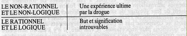 C'est l'immense désir de parvenir à ce type d'expérience non-rationnelle qui incita, le plus souvent, dans les années 60, à recourir à des drogues comme le L.S.D. et le S.T.P. A cette époque, un homme ou une femme sensible utilisait la drogue, non comme simple moyen d'évasion, mais avec l'espoir de faire l'expérience d'une réalité qui donnerait un sens à sa vie. Timothy Leary, ancien professeur à l'Université de Harvard, a curieusement relié l'expérience faite avec du L.S.D. à celle qui est décrite dans le Livre des Morts Tibétain, et il montre que la recherche de cette expérience et la forme qu'elle revêt sont à peu près identiques en Orient et en Occident.